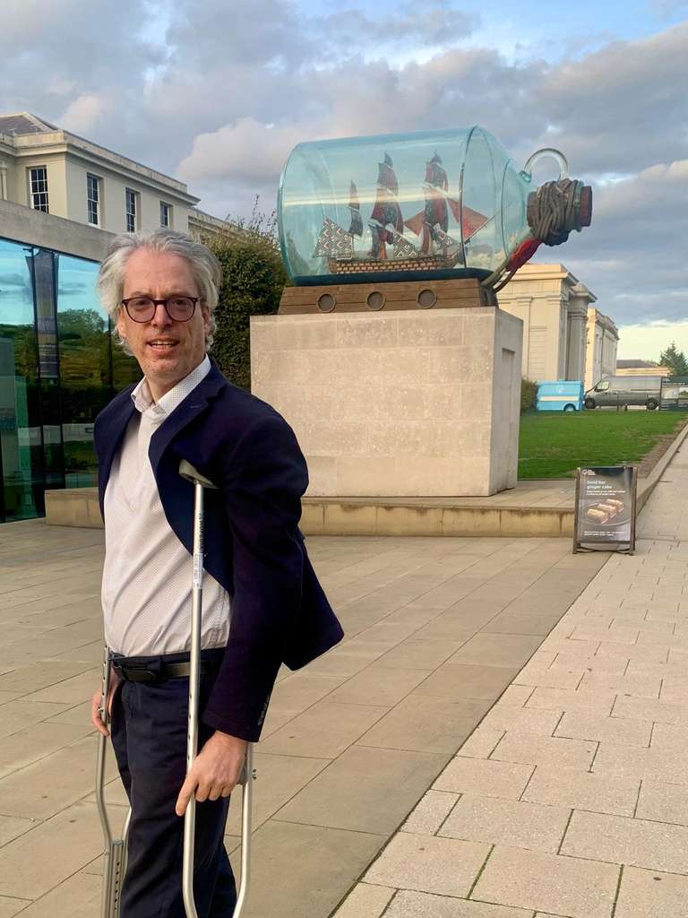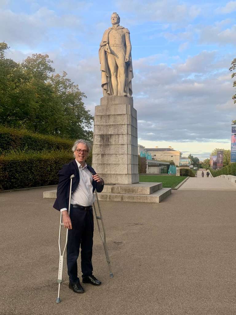 Avant la cérémonie, je me laisse happer par Londres. Un automate de rue, la statue de William IV, le navire de Nelson enfermé dans une bouteille, puis une petite coupe à l’accueil pour me “mettre en jambes” (si j’ose dire, avec mes béquilles).